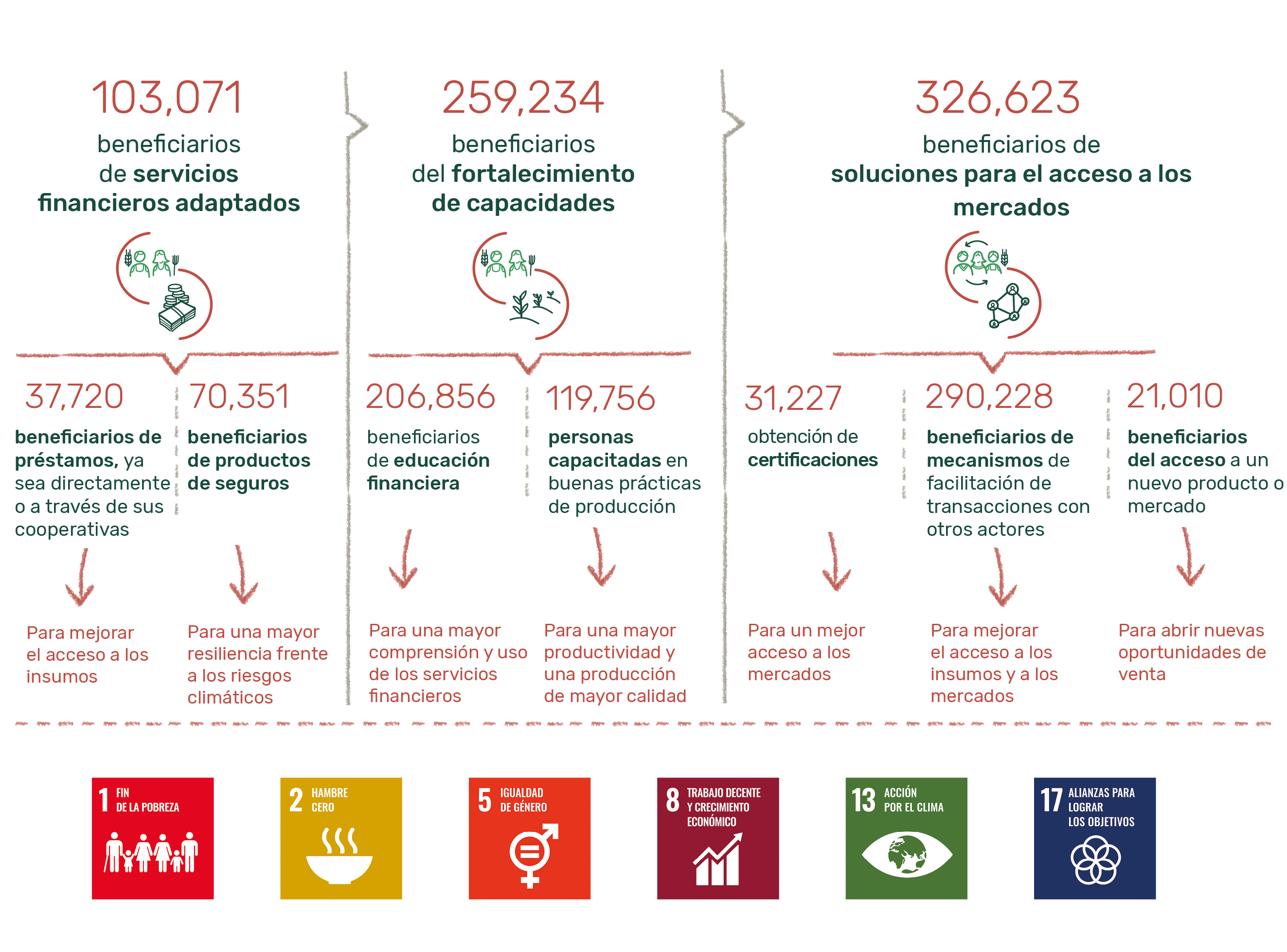de los cuales el 26% se alcanzaron mediante mujeres agricultoras