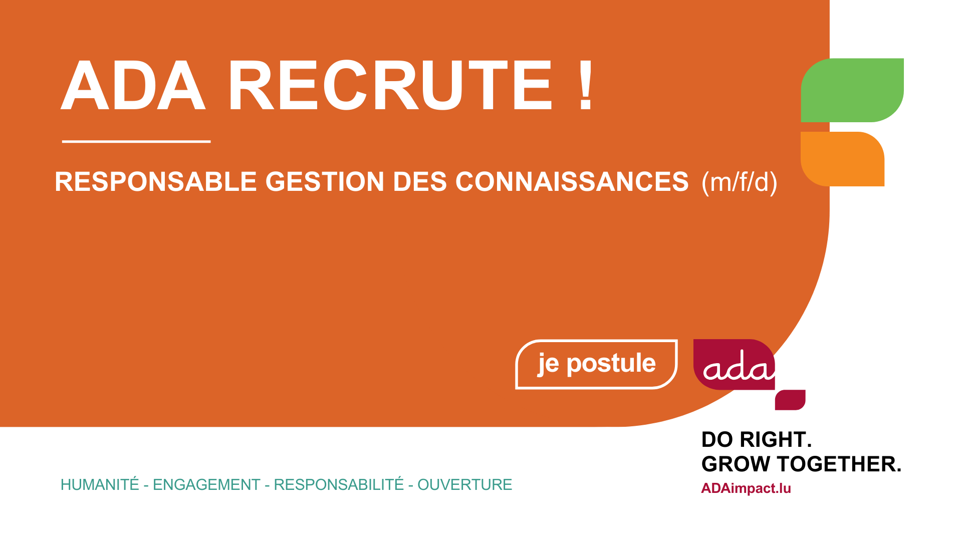 - Coordonner les méthodologies et les équipes, en lien avec la stratégie de ADA, en assurant la supervision, la cohérence des pratiques et le pilotage budgétaire.